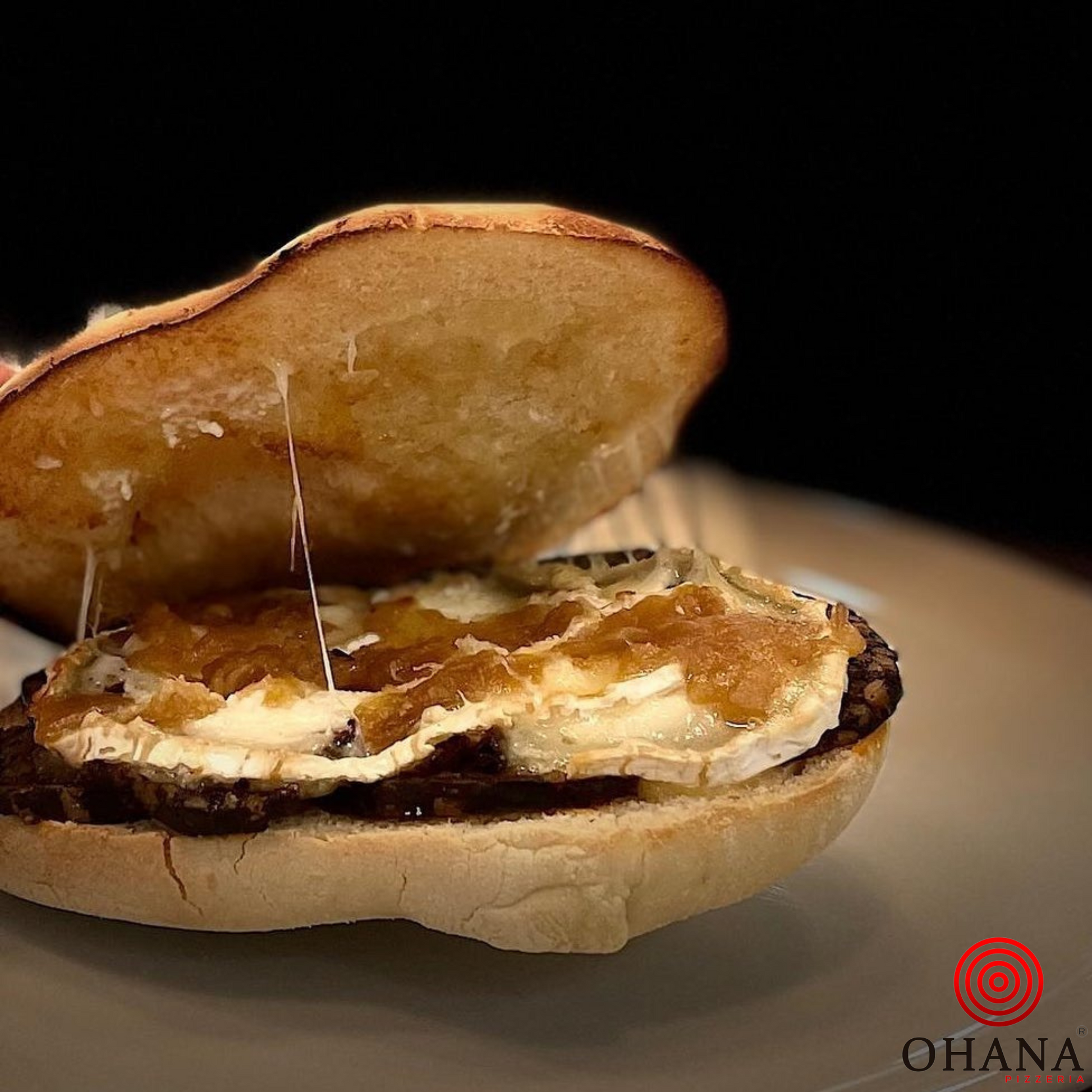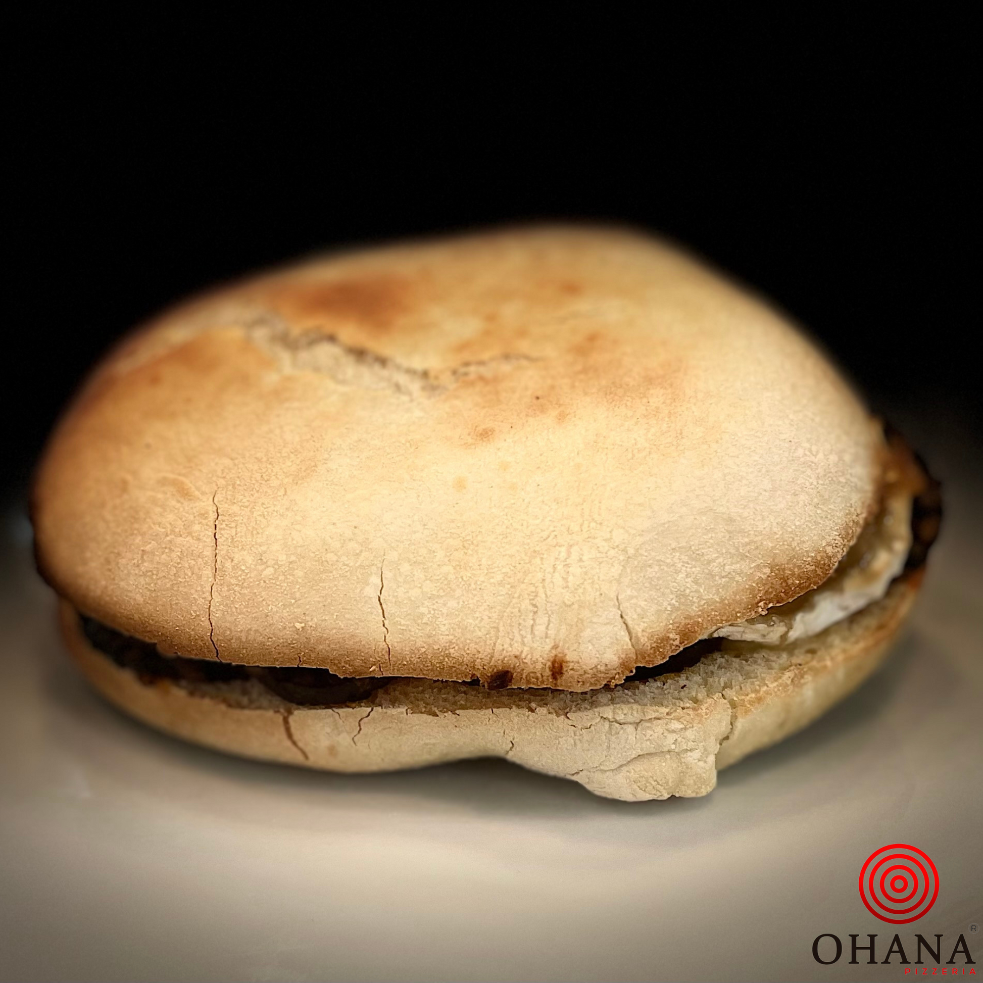 El Mollete Ohana Burgos es una experiencia gastronómica única. Elaborado con pan de mollete de Antequera, se rellena con la auténtica morcilla de Burgos, cremoso queso de cabra y una dulce cebolla caramelizada. Todo se tuesta a la perfección en nuestro horno de piedra, colocado sobre una red que realza su textura y sabor. Una fusión de tradición y calidad en cada bocado.