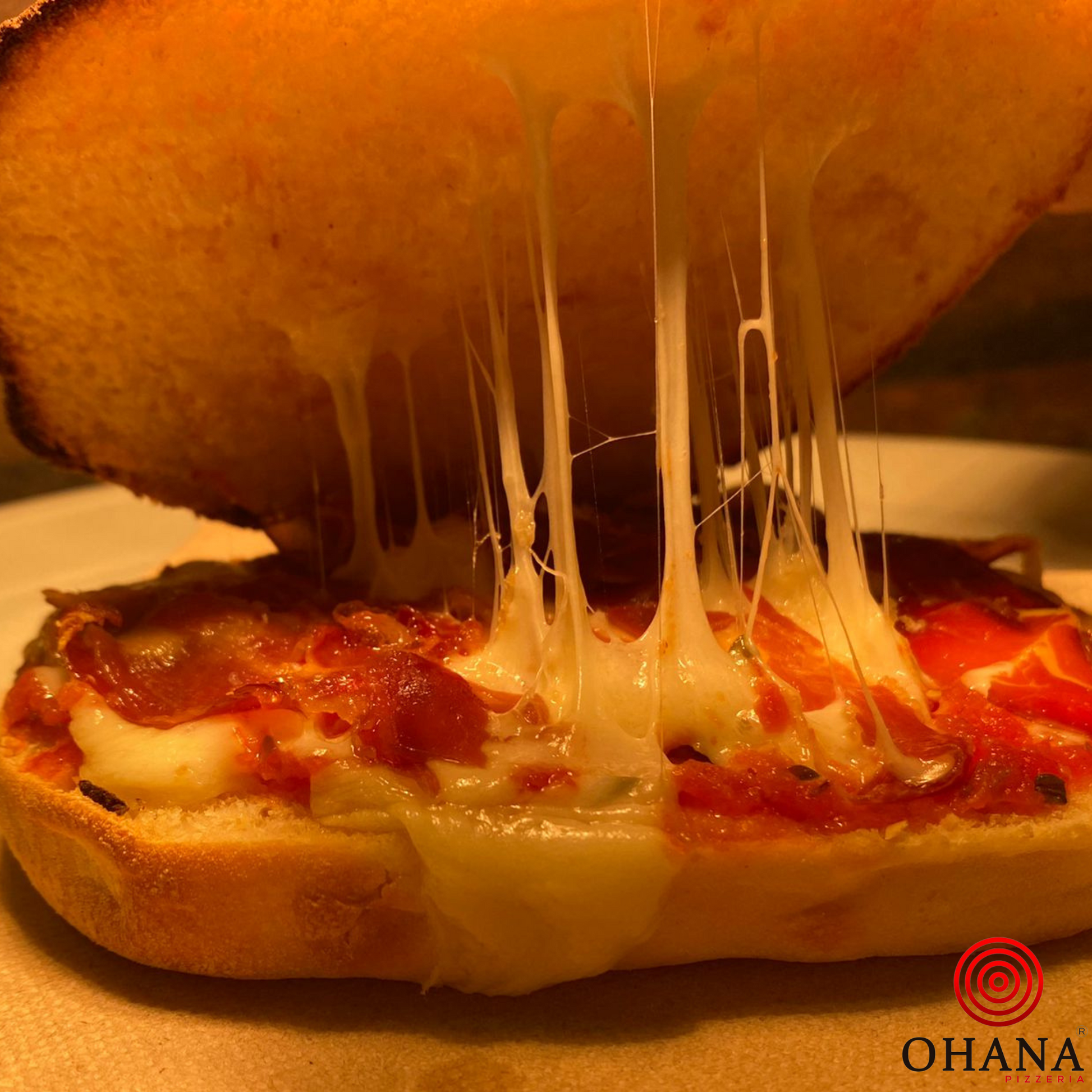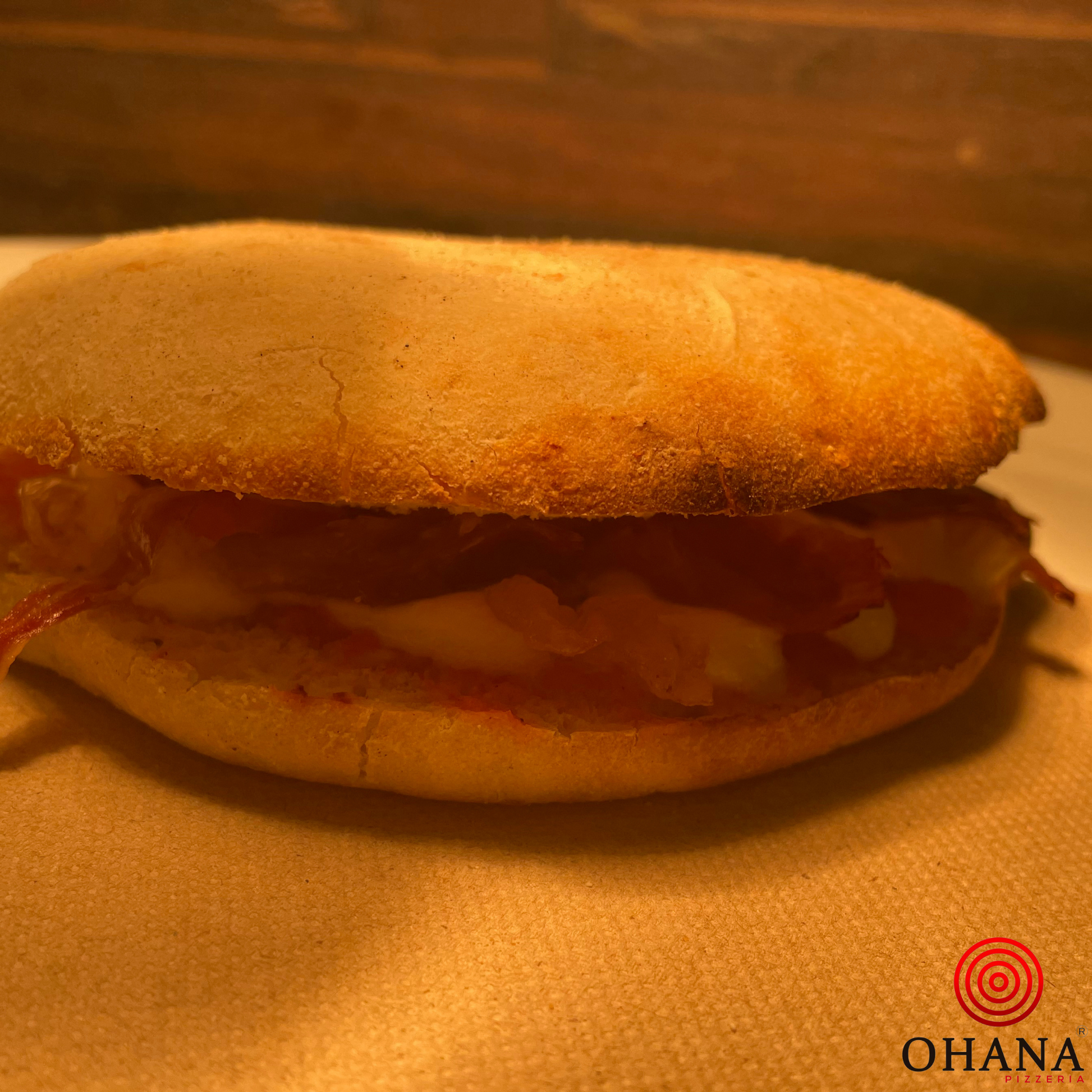 El Mollete Ohana Ibérico es pura excelencia en cada bocado. Sobre nuestro pan de mollete de Antequera, se extiende una deliciosa salsa de tomate, mozzarella fior di latte y lonchas de jamón ibérico de primera calidad. Todo se hornea en nuestro horno de pizza, logrando una textura crujiente y un sabor inigualable. Una joya para los amantes de lo auténtico