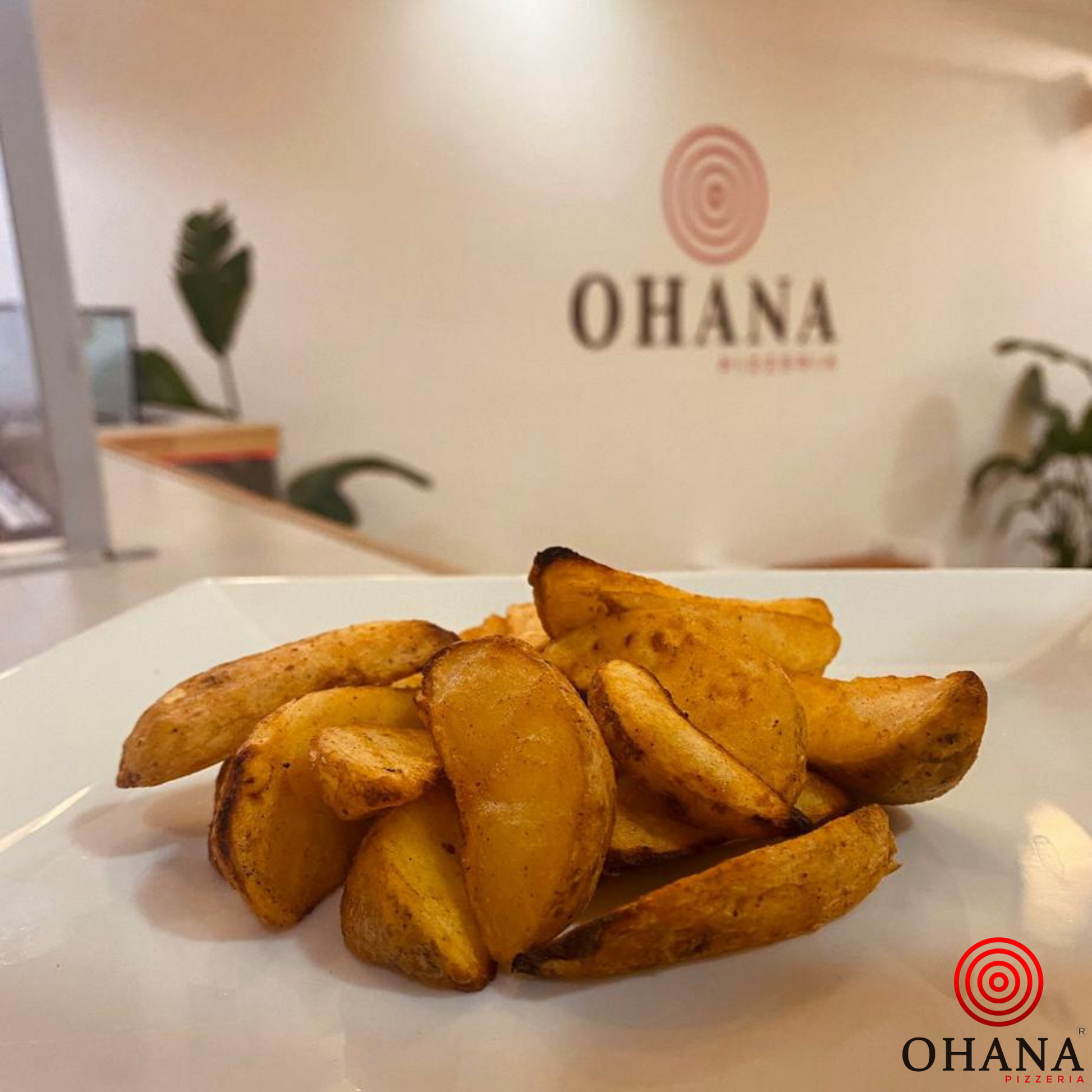 Las Patas Rústicas Ohana son trozos de patata tipo gajo, crujientes por fuera y suaves por dentro, perfectas para acompañar. Se sirven con nuestra deliciosa salsa ketchup Heinz, ideal para mojar y disfrutar al máximo.